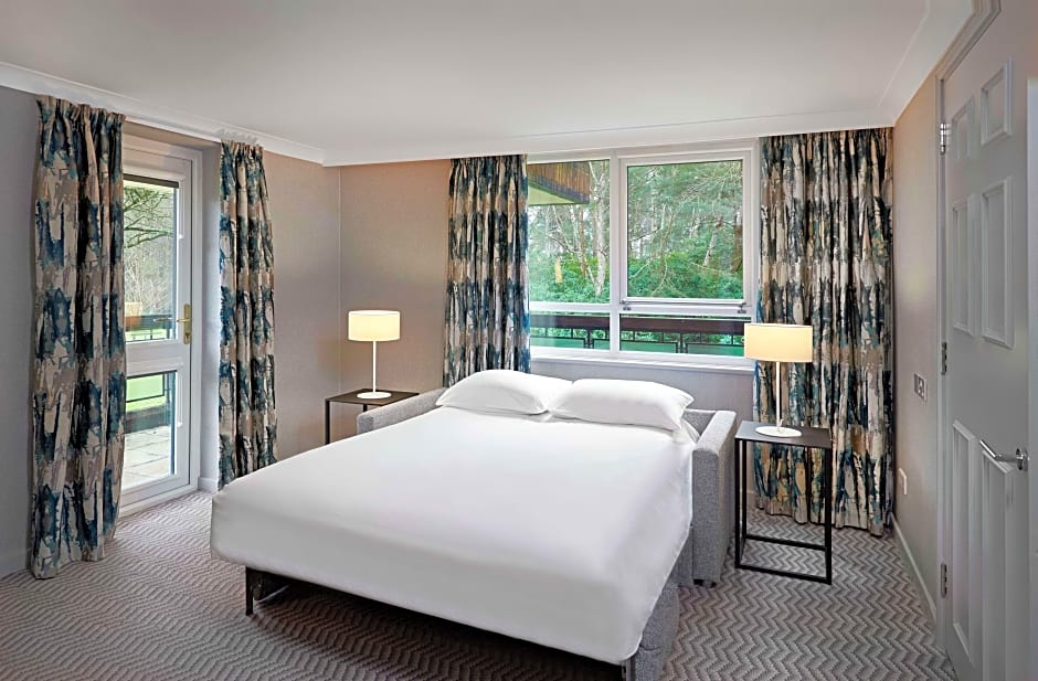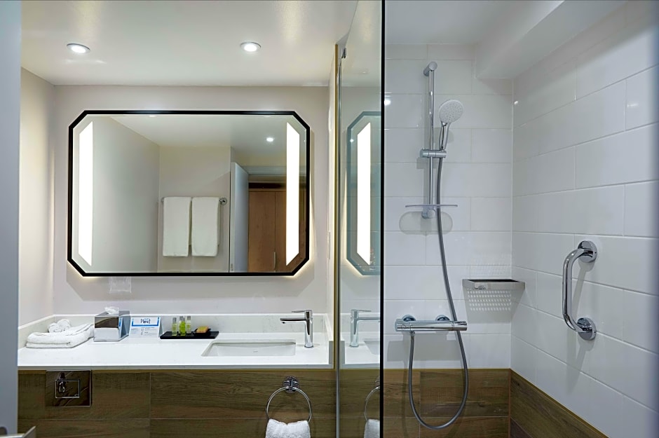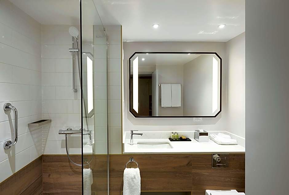 This contemporary, recently refurbished guest room has a 40-inch LED TV, work space and WiFi and features a king-sized Hilton Serenity bed and a single sofa bed. The room features an elegant bathroom with exclusive toiletries. Additional features include tea/coffee making facilities, fluffy bathrobes, slippers, USB socket, mini fridge, and safe.